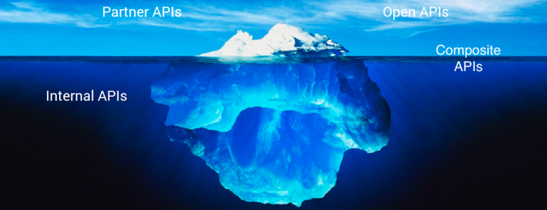Cada empresa que desarrolla una API pública probablemente desarrolló primero una API privada. Ya sea Facebook, Twitter, Google o cualquier empresa, sus API públicas, sitios web y aplicaciones móviles funcionan con sus API privadas en segundo plano. Las API públicas visibles son solo la punta del iceberg. Las API privadas forman la gran masa submarina del iceberg.